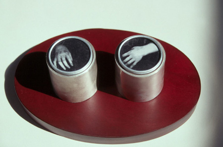 Photo, Silver Pedestals, Glass, Wood Base