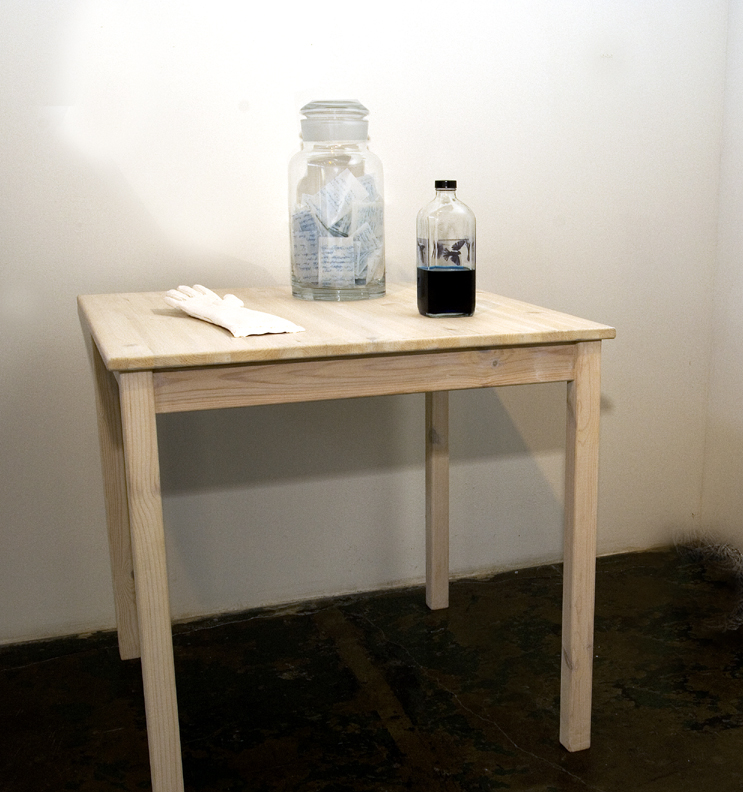 ink on glassine, glass apothecary jar