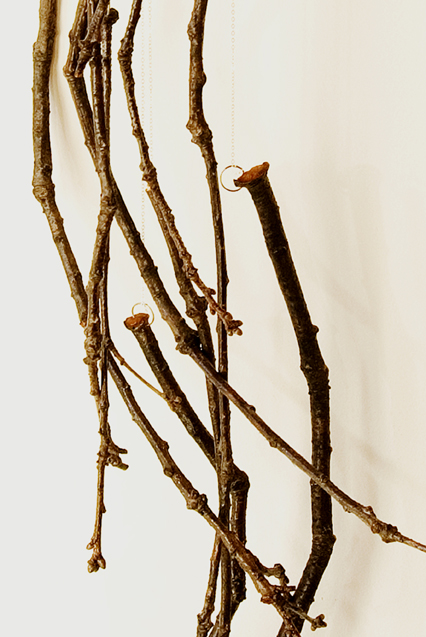 sticks from White Oak tree in Dickinson’s garden, silver chains, wood dowel