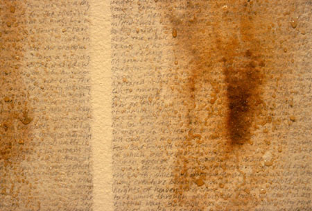 Graphite text, burn marks, honey