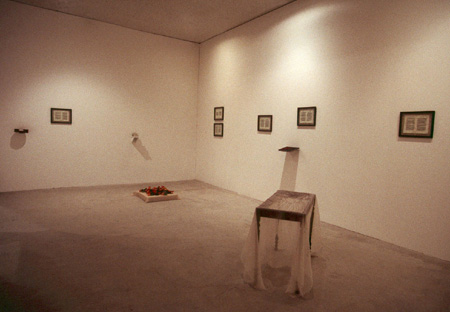 The installation was part of an exhibition of collaborations that took place between artists and writers. From the text, "The Hold of Memory," written by Richard D. Hecht, Ekstrom has created altered pages and sculptural forms that bring into material presence the life of "Judy" a young girl who survived the Nazi death camp, Stutthof. Ekstrom and Hecht collaborated as well on the installation of the forms.