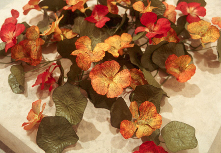 altered silk nasturtiums, photo transfers of map of Europe, 1942 24d x 24w x 10h