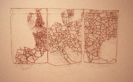 altered map, red ink 2d x 33w x 17h