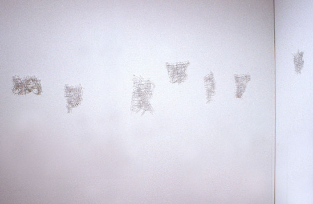 "Invisible Cities" is a series of sewn maps that conflate more than one location in each map. Each tiny, ephemeral form is created by machine sewing the roadways and cutting away the cloth between.